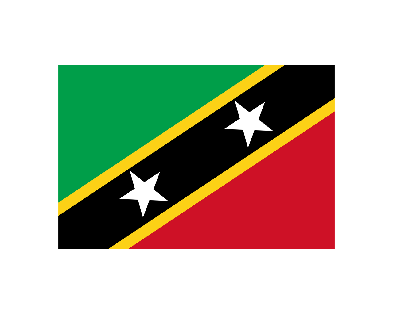 圣基茨和尼維斯聯(lián)邦(The Federation of Saint Kitts and Nevis),簡稱“圣基茨和尼維斯”,位于東加勒比海背風(fēng)群島北部,是一個由圣克里斯多福島(圣基茨島)與尼維斯島所組成的島國。于1983年9月19日獨(dú)立,現(xiàn)為英聯(lián)邦成員國之一,首都巴斯特爾。圣基茨和尼維斯國旗啟用于1983年9月19日,國旗呈長方形,長寬之比為3:2。旗面左上角和右下角分別為兩個相等,對稱的三角形;左上為綠色,右下為紅色,一條帶黃邊的黑色寬帶自左下角貫穿至右上角。綠色象征綠色大地和各種農(nóng)作物,紅色象征獨(dú)立后國家的新生,黃色象征陽光,黑色象征這個島國主要是黑色人種。兩顆白色五角星象征圣基茨島和尼維斯島。