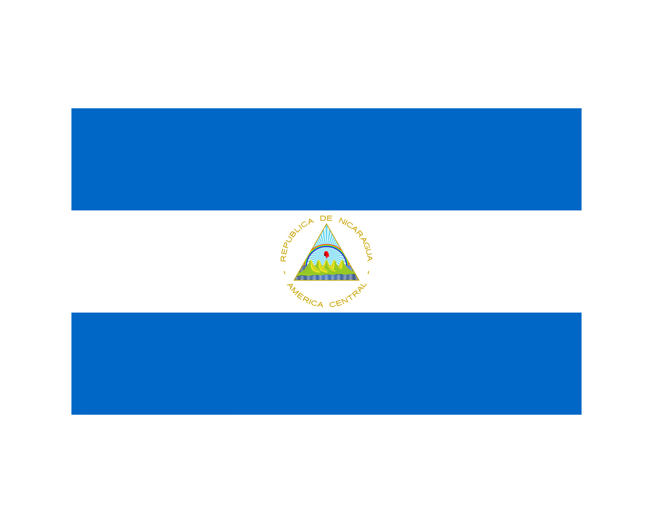 尼加拉瓜共和國(英語:The Republic of Nicaragua),簡稱尼加拉瓜,是一個總統(tǒng)共和制的國家,位于中美洲中部,首都為馬那瓜。尼加拉瓜國旗啟用于1971年8月27日,國旗呈長方形,長寬之比為5:3。旗面自上而下由藍白藍三個平行相等的長方形組成。中央繪有國徽。國旗顏色來源自原中美洲聯(lián)邦國旗,也象征這個國家在太平洋和加勒比海之間的地理位置。