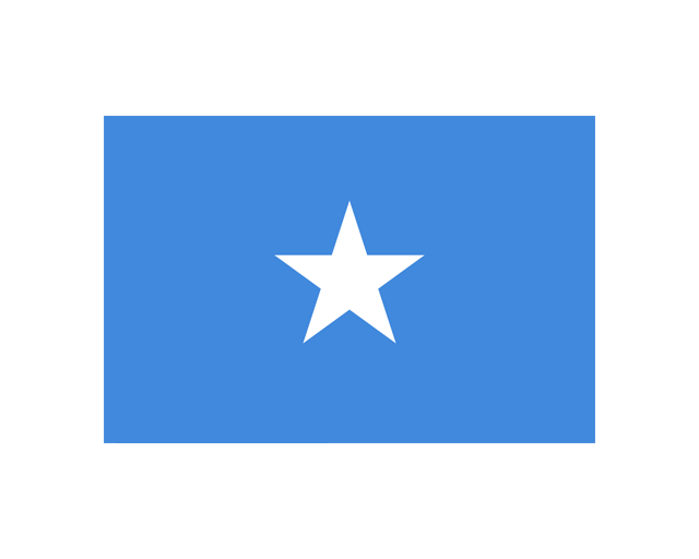索馬里聯邦共和國(The Federal Republic of Somalia),簡稱索馬里,位于非洲大陸最東部的索馬里半島,擁有非洲大陸最長的海岸線,索馬里是世界最不發達國家之一,首都是摩加迪沙。索馬里國旗啟用于1954年10月12日,由穆罕默德·阿瓦勒·利班設計。國旗呈長方形,長與寬之比為3∶2。旗地為淺藍色,正中一顆白色五角星。五角星象征非洲的自由和獨立。