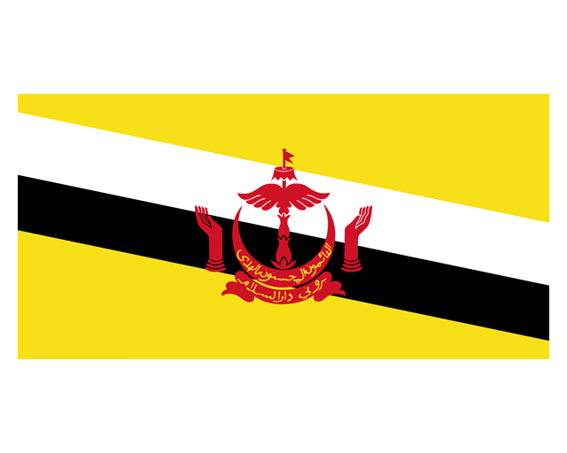 文萊達(dá)魯薩蘭國(guó)(Negara Brunei Darussalam),簡(jiǎn)稱文萊(Brunei),是一個(gè)君主專制國(guó)家。首都斯里巴加灣市,國(guó)歌《真主保佑文萊》。文萊國(guó)旗呈橫長(zhǎng)方形,長(zhǎng)與寬之比為2:1。由黃、白、黑、紅四色組成。黃色的旗地上橫斜著黑、白寬條,中央繪有紅色的國(guó)徽。1906年,當(dāng)文萊還是英國(guó)的保護(hù)國(guó)時(shí),就制作了文萊第一面國(guó)旗——呈長(zhǎng)方形的黃色旗幟。旗幟上的黃色代表蘇丹至高無(wú)上。后來(lái)為了紀(jì)念兩位有功的親王,文萊決定在國(guó)旗上加了黑、白兩條斜條。1959年文萊實(shí)現(xiàn)自治時(shí)制定了第一部憲法,憲法規(guī)定把文萊的國(guó)徽?qǐng)D案繪制在國(guó)旗中央。1984年1月1日,文萊宣布完全獨(dú)立,國(guó)旗沿用至當(dāng)代。