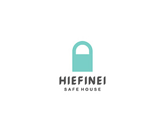 HIEFINEI防盜系統公司標志設計,主識別圖形是一個負形空間的“門”,該公司的主營業務是防盜系統,使用這個創意與產品相契合。