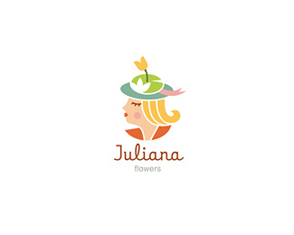 JULIANA花卉/花藝商店標(biāo)志使用一位漂亮的女士形象,花卉制作的帽子是該標(biāo)志的特征,整體的色彩豐富柔和。