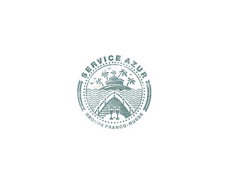 SERVICEAZUR旅游徽章設(shè)計,以旅游景點的剪影圖形作為主識別元素,融入海、船元素,一對酒杯詮釋著浪漫。
