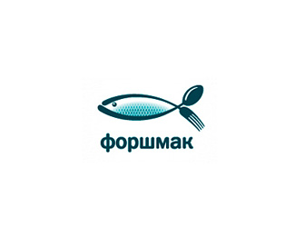 FORSHMAK餐廳標(biāo)志設(shè)計欣賞,該標(biāo)志的主識別圖形由彎曲的刀和叉組合成一條魚的形狀,整體的配色及創(chuàng)意都很棒。