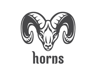 Horns標志的設計以山羊頭為主識別圖形,用版畫的形式表現。