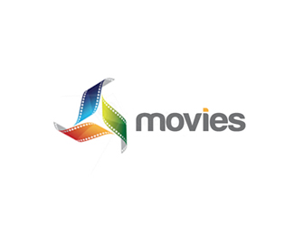影視公司logo設計使用了膠片的素材,構成旋轉的風車圖案,logo色彩驚艷醒目。