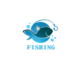 logo為釣魚主題,充滿活力的魚和魚鉤,組合在一個圓形內,整體感和色彩統一。