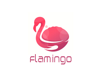 火烈鳥元素logo設(shè)計作品,以正方形比例設(shè)計的火烈鳥,圖形體現(xiàn)了火烈鳥的嘴部特征,色彩鮮明舒適。