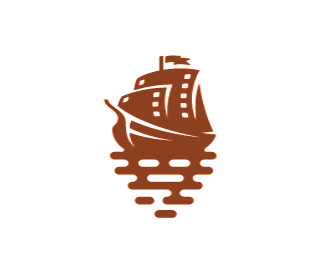 帆船元素圖標為一家電影公司所有,標志使用膠片作為帆船的船帆,水的倒影增強里立體感,標志簡單形象。