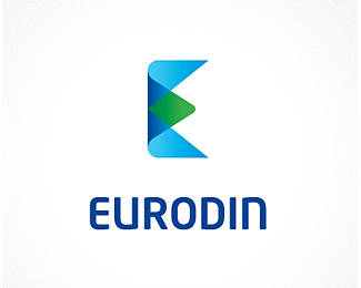 Eurodin字母創意標志設計以字母“E”作為創意原型,使用層疊的方式表現字母“E”,以藍色和綠色作為主識別色,可以應用于科技相關的創意標志設計。
