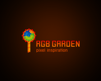 RGB花園抽象創意標志設計欣賞,使用圓形小點組成成的一個抽象樹的形狀作為該標志的主識別圖形,多彩的顏色使該標志更具識別性。