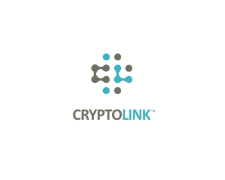 CryptoLink通信品牌標志設計欣賞,應用于通信相關的標志創意設計,以點陣的方式構成主創意圖形,整體以藍綠色為主色調。