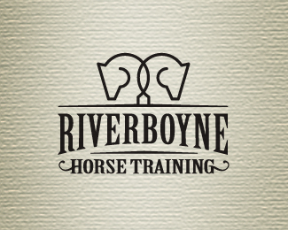 Riverboyne訓馬場標志設計欣賞,使用線條對稱的方式勾勒出該品牌的主創意圖形,整體以黑色為主色調。