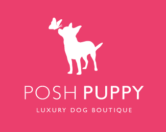 Posh Puppy辣妹小狗寵物標(biāo)志,豪華狗的精品寵物品牌標(biāo)志,以小狗與蝴蝶的形象結(jié)合構(gòu)成主創(chuàng)意造型,粉紅色為主色調(diào)。