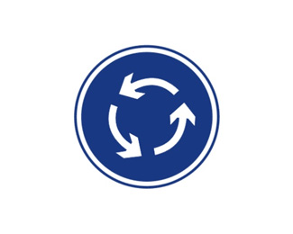 環島行駛標志表示只準車輛靠右環行。此標志設在環島面向路口來車方向適當位置。