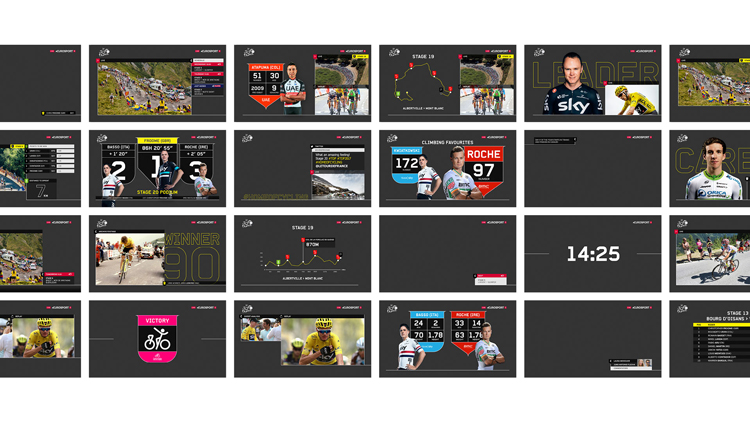 環(huán)法自行車賽體育品牌設(shè)計(jì)包括一個(gè)圖形系統(tǒng),包括品牌、標(biāo)題、賽后分析的信息圖表工具,以及一個(gè)標(biāo)識所有歐洲體育賽事騎行內(nèi)容的整體視覺系統(tǒng)設(shè)計(jì)。