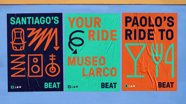 這些符號象征著英雄的“日常時刻”在Beat運營的城市,DesignStudio說,包括冰淇淋、太陽、棕櫚樹、揚聲器和雞尾酒。它們以深藍色、淺綠色和橙色出現。